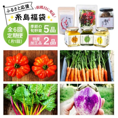 63【全6回定期便】朝採りオーガニック旬野菜5品+糸島産 大ヒット特産加工品2品セット[AGE030]