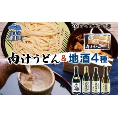 5肉汁うどん1箱と嵐山町地酒4本セット[№5755-0262]