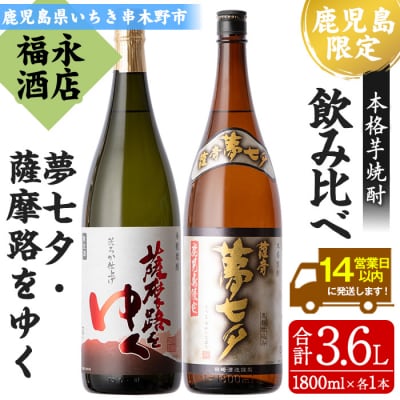25芋焼酎 鹿児島 限定販売 「薩摩夢七夕」 「薩摩路をゆく」1800ml 各1本