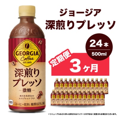 3ヵ月連続【ジョージア 深煎りプレッソ 500ml×24本】を毎月お届けします。「ほのかな甘みのエスプレッソ*ラテ」ジョージア 深煎りプレッソ 500ml×24本