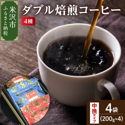 4【 ダブル焙煎 / 中挽きタイプ 】 コーヒー 4種 計 800g ( 1袋 200g )