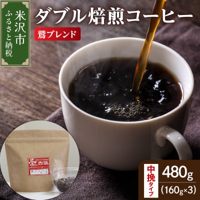 66【 ダブル焙煎 】 鷲ブレンド 480g(160g×3袋)〔 中挽きタイプ 〕