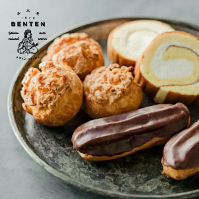 弁天堂人気のスイーツセット【クッキーシュークリーム・エクレア・ロールケーキ】 ab08801