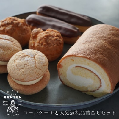 弁天堂 ロールケーキと人気返礼品詰合せセット(シュークリーム・エクレア・ブッセ) ab08028