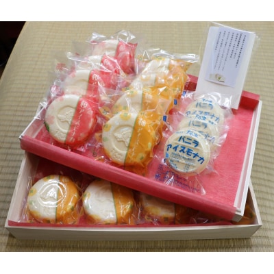 【高島屋コラボ企画】ほどよい甘さのアイスクリームを手焼きのもなかでサンドしたもなかアイス。ひとつひとつ丁寧に手作りしているこだわりの返礼品です。