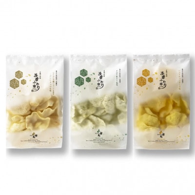 95淡雪ふわり 3袋 セット 米菓 詰め合わせ(いぶりがっこチーズ・ぎばさ青のり塩・こがししょっつる)