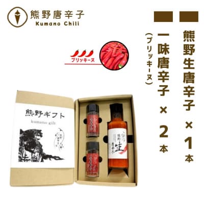84【テレビで紹介されました】熊野唐辛子ギフト2(一味唐辛子プリッキーヌ×2本と生唐辛子のセット)