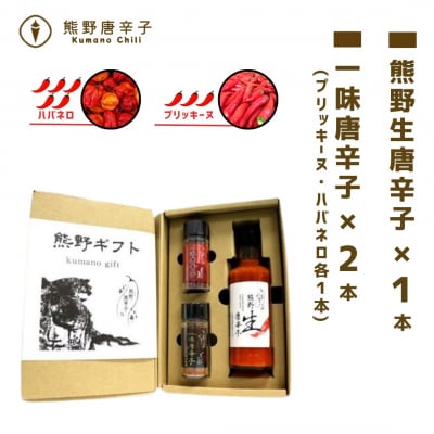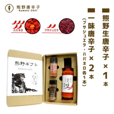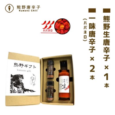 86【テレビで紹介されました】熊野唐辛子ギフト7(一味唐辛子(ハバネロ)2本+生唐辛子)