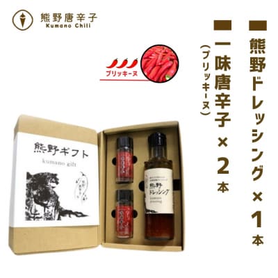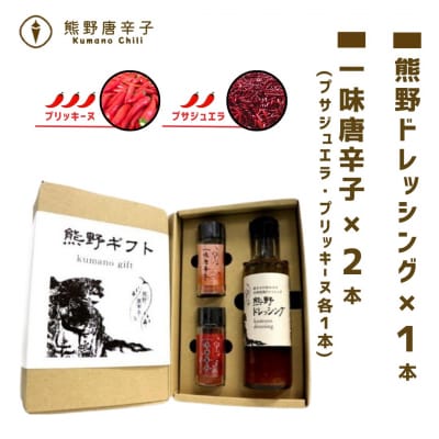 88【テレビで紹介されました】熊野唐辛子ギフト10(一味唐辛子プリッキーヌ×2本とドレッシング)