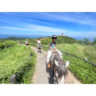 宗像・大島の自然と海を臨む絶景の中ででの乗馬体験をお楽しみいただけます。