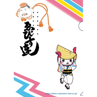 有名連【うずき連・えびす連】の浴衣を着たオリジナルキャラクターの「阿波サットちゃん」がデザインされたクリアファイルです。