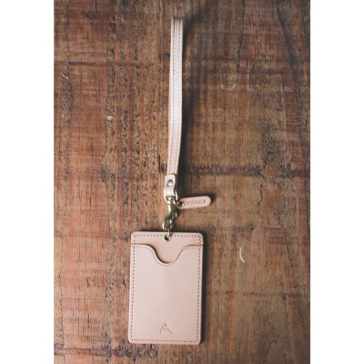 92【minca】栃木レザーのストラップ付タテ型パスケース/タン(生成) 706