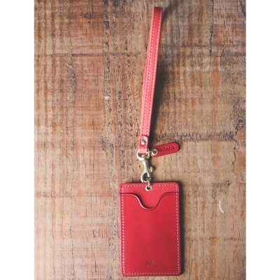 95【minca】栃木レザーのストラップ付タテ型パスケース/レッド 706