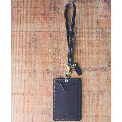 96【minca】栃木レザーのストラップ付タテ型パスケース/ブラック 706