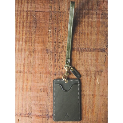 97【minca】栃木レザーのストラップ付タテ型パスケース/オリーブ 706