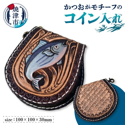 かつおをデザインに取り入れ、裏側は日本伝統模様の青海波柄で仕上げられたコイン入れです。コイン入れですがリップや鍵入れにもOKです。
