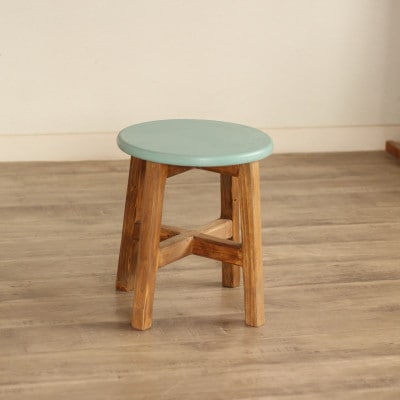 10座面の広いスツール ライトブルー×オーク【申込後に製作いたします】