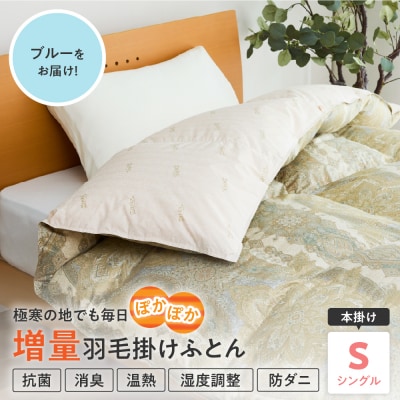 45羽毛移動防止特殊構造 羽毛増量タイプ掛け布団 350dp シングル ブルー