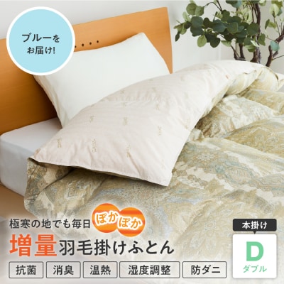48羽毛移動防止特殊構造 羽毛増量タイプ掛け布団 350dp ダブル ブルー
