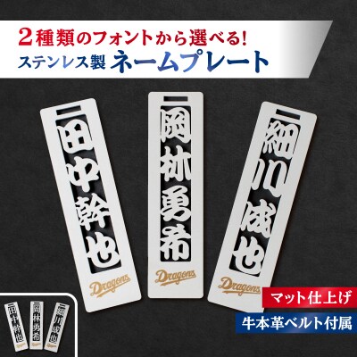 ステンレス製ネームプレート 牛本革ベルト付属 マット仕上げ【中日ドラゴンズコラボ】