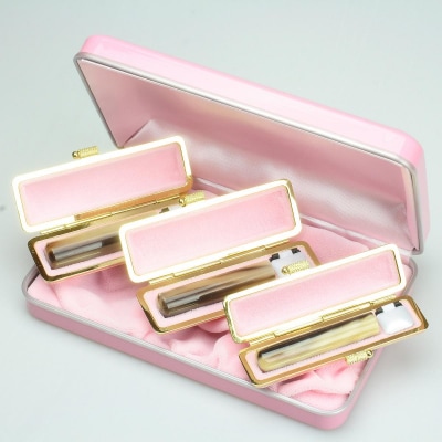オランダ水牛印鑑3本とピンクケースのセットです。