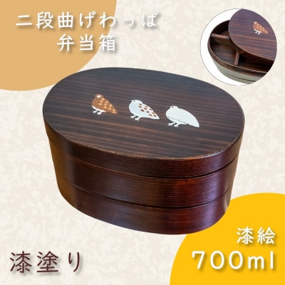 5【漆塗り】「らいちょう」漆絵入り 二段曲げわっぱ弁当箱