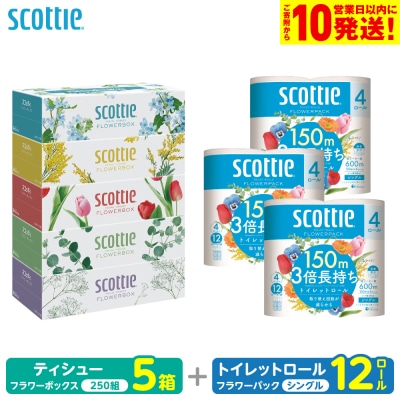 1スコッティ ティシュー 250組 5箱 トイレットロール シングル 12ロール_186-6548