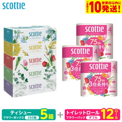 3スコッティ ティシュー 250組 5箱 トイレットロール ダブル 12ロール_186-6552