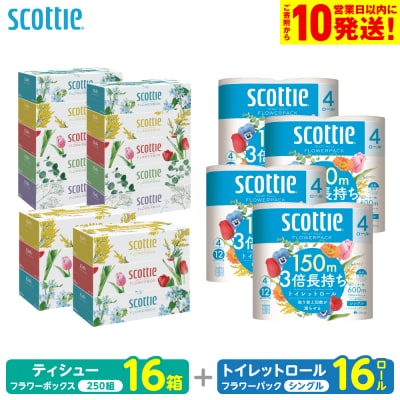 4スコッティ ティシュー 250組 16箱 トイレットロール シングル 16ロール_186-6551