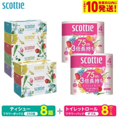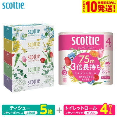 8スコッティ ティシュー 250組 5箱 トイレットロール ダブル 4ロール_186-6708