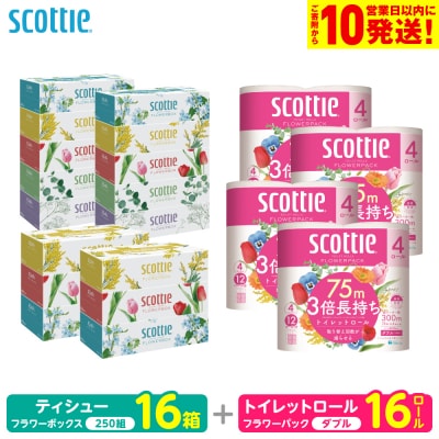 6スコッティ ティシュー 250組 16箱 トイレットロール ダブル 16ロール_186-6555