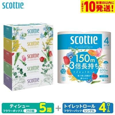 7スコッティ ティシュー 250組 5箱 トイレットロール シングル 4ロール_186-6705
