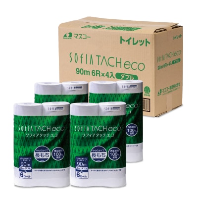27マスコー製紙 ソフィアタッチ エコ 芯なし トイレットペーパー ダブル 6ロール×4パック
