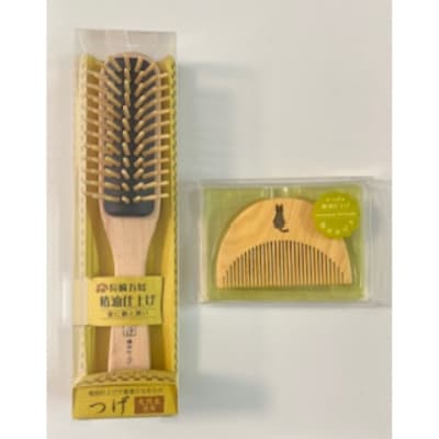19【セット】つげブローブラシ+つげのくし(ねこ)携帯袋付き