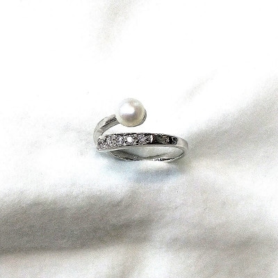 約4.5mmのあこや本真珠が1珠アレンジされた、2匹の蝶々がデザインされたシルバー製リングです。