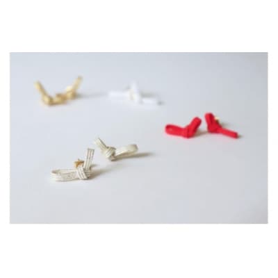 結ぶことで幸福が訪れると言われている水引。そんな伝統的で縁起のいい水引でシンプルなデザインの耳飾りを作りました。