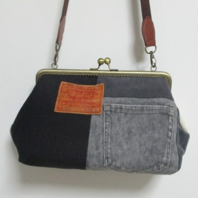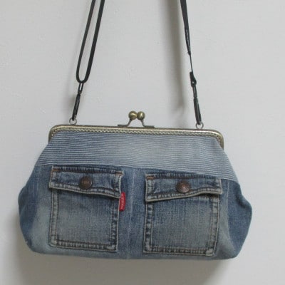 手作り デニムカジュアルリメイクがま口バッグ 09