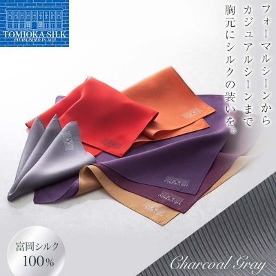 45【純国産高級シルク100%】 ポケットチーフ プレーン チャコールグレー F21E-330