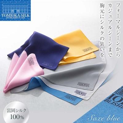 7【国産シルク100%】富岡シルク ポケットチーフ レンガ:リヨンブルー F21E-320