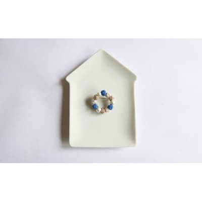 水引で作ったブローチを御用意しました。子供の頃夢中になって編んだ花かんむり。そんな懐かしく素朴な花かんむりを水引で表現しました。こちらはネモフィラのような綺麗なブルーが印象的なカラーです。コーディネートのワンポイントにもぴったりです。