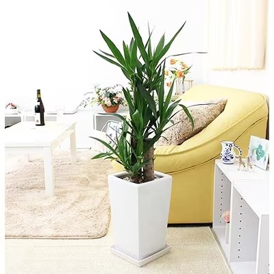 73【2026年1月下旬発送】青年の木(ユッカ) 7号+ホワイトスクエア陶器鉢 ストレート