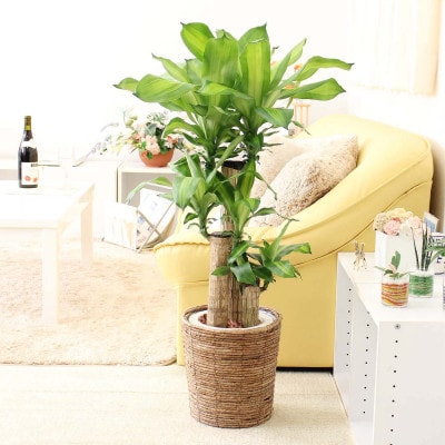 幸福の木 7号 ホワイトバスケット鉢カバー 高さ:約75cm~90cm内外 土の表面:ウッドチップ