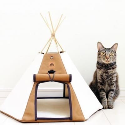 2【ネコテント】国産帆布の本格的デザインペットテント(生成×ブラウン)_00374