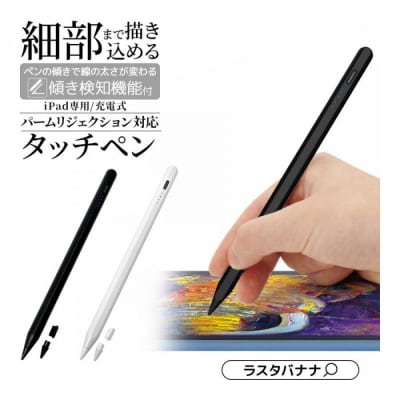 4【ブラック】ラスタバナナ iPad 専用 傾き検知搭載 充電式 タッチペン パームリジェクション