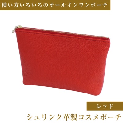 シュリンク革製コスメポーチ(ベージュ) ay10152