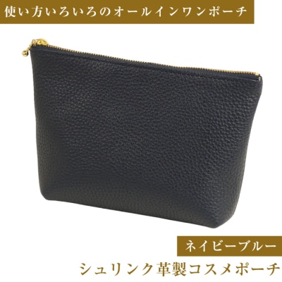 シュリンク革製コスメポーチ(ネイビーブルー) ay10151
