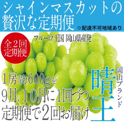 18晴れの国岡山の シャインマスカット晴王 定期便2回(各1房600g以上)[No.5735-1716]