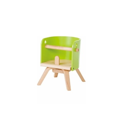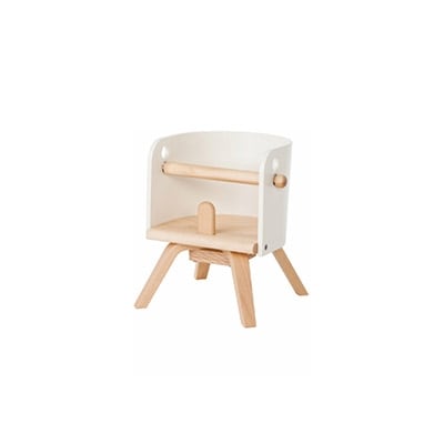 遊び心満載の子供イス、一人座りできる赤ちゃん(6か月頃~)はベビーセットを付けて。高さを調節すると大人まで使えます。