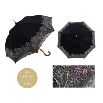 20【シノワズリーモダン京都】女優日傘プレミアム ペイズリー更紗オーガンジー刺繍長日傘 ブラック