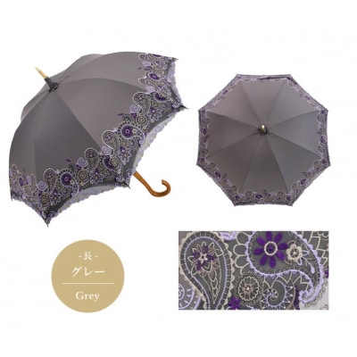 21【シノワズリーモダン京都】女優日傘プレミアム ペイズリー更紗オーガンジー刺繍かわず張り長日傘 グレー